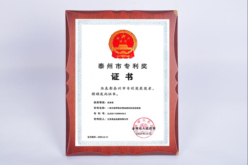 泰州市專利獎(jiǎng)證書-優(yōu)秀獎(jiǎng)