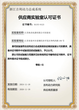 吉利實(shí)驗(yàn)室認(rèn)可證書